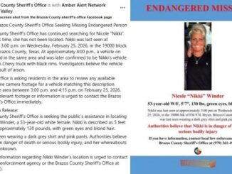The Brazos County sheriff’s office search for a missing woman also involves an arson investigation. A sheriff’s office news release says a pickup truck owned [Read More...] -