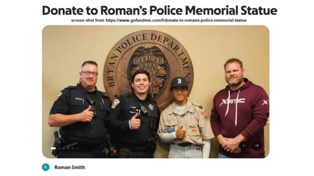 And Roman has enlisted Navasota sculptor J. Payne Lara, who has created statues for the Brazos Valley Veterans Memorial, to create a statue of his godfather. Beaumont police officer Bryan Hebert died in the line of duty in July of 2011.