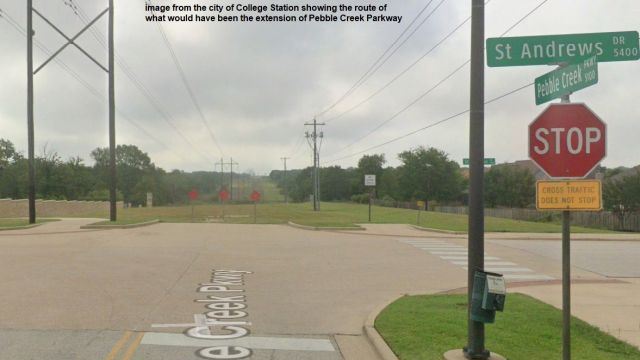 The College Station city council voted 4-3 to remove the Pebble Creek Parkway extension from the city’s comprehensive plan.