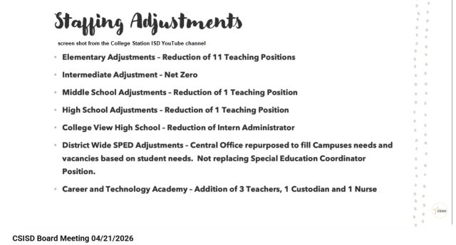 Click below to hear comments from the April 21, 2026 College Station ISD school board meeting.