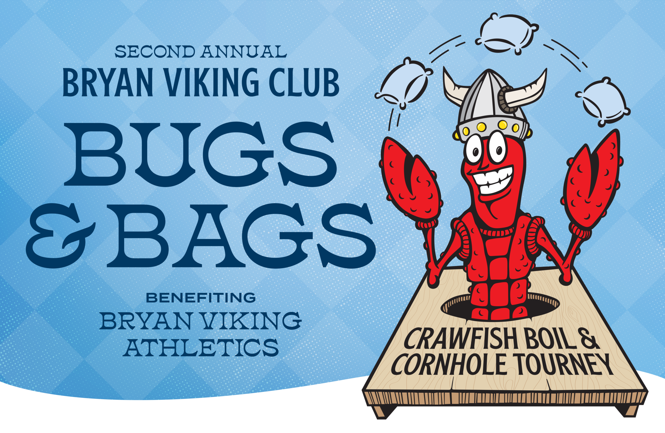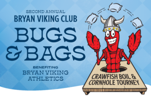 The Bryan Viking Club is hosting its 2nd Annual Bugs & Bags Crawfish Boil & Cornhole Tournament in support of Bryan Viking Athletics at Carney’s Pub & Grill!