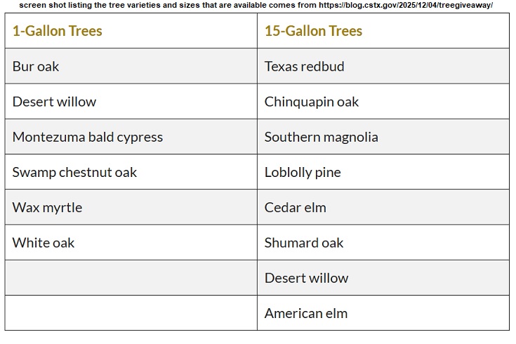 Public communications director Colin Killian shared on WTAW’s The Infomaniacs that trees will be available starting Friday (December 12) at 10 a.m. and continuing until supplies run out or 6 p.m.