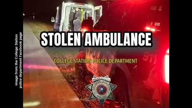 The College Station police arrest report says cameras inside the ambulance and tracking devices led officers to finding it on Highway 6 south of town.