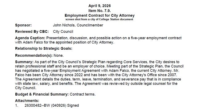 Click below to hear comments from John Nichols and Bob Yancy at the April 9, 2026 College Station city council meeting.