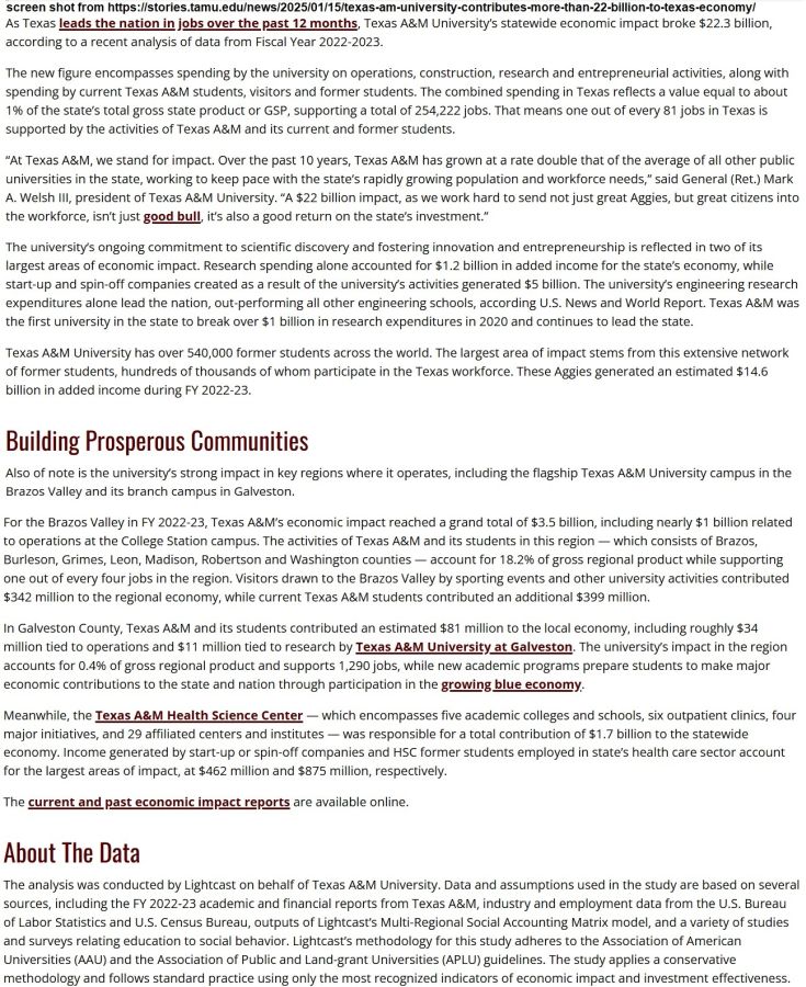 Screen shots from https://stories.tamu.edu/news/2025/01/15/texas-am-university-contributes-more-than-22-billion-to-texas-economy/