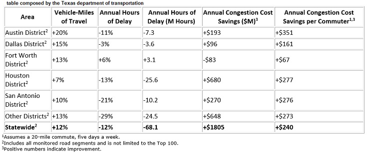 As Texas continues to experience rapid population and economic growth and more vehicles on the road, targeted congestion-relief transportation investments are helping drivers spend less time stuck in traffic and saving Texans millions of dollars each year.